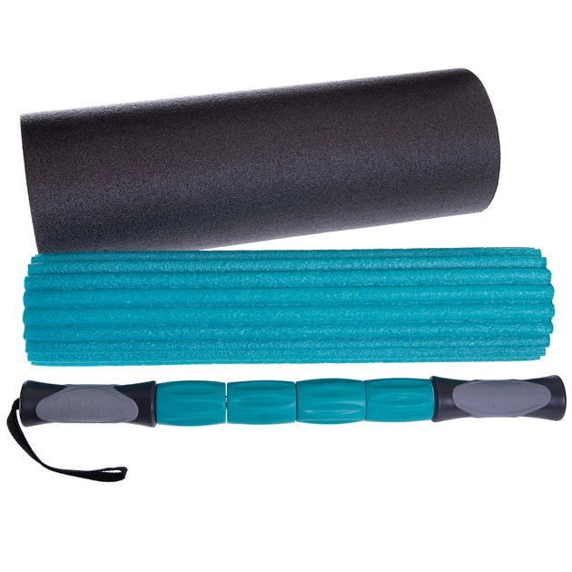 Йога ролер набір 3 в 1 (масажер + два ролери для йоги) 45см EPP Zelart (d-16,5см, чорний-м'ятний) (FI-5715)