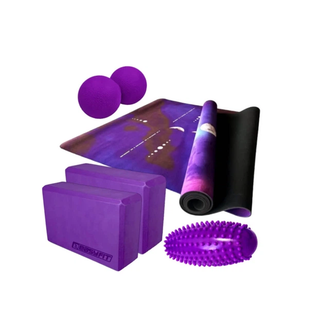 Набір для йоги: Коврик для йоги EasyFit BlueMoon (замша-каучук) + Блоки для йоги EasyFit EVA + Масажний м'ячик EasyFit TPR п