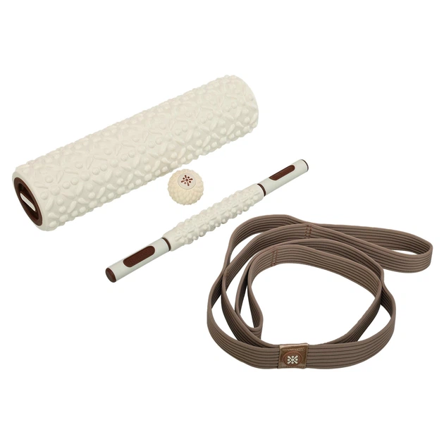 Набір для йоги 4в1 ролер масажер-палиця, м'яч масажний для МФР, стрічка стропа BLOOM LB7104
