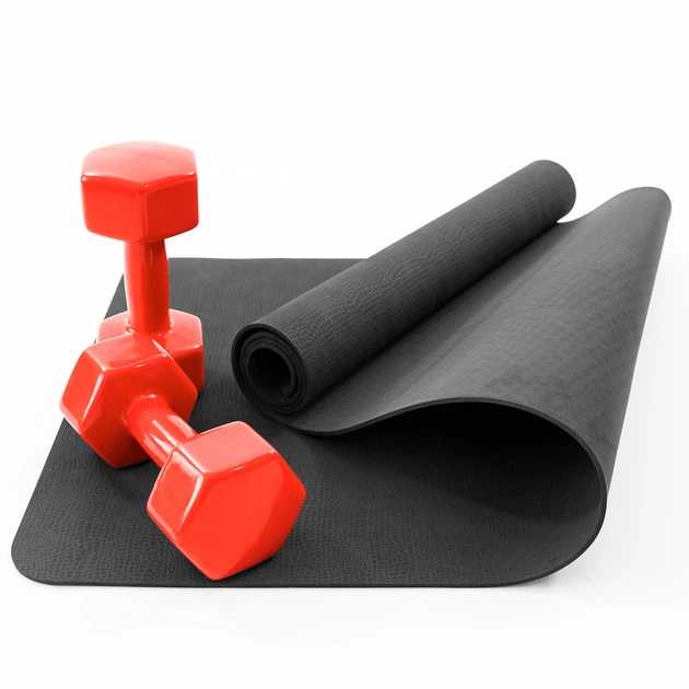 Набір для фітнесу 2в1 килимок для фітнесу та спорту (каремат) + гантелі 2шт по 9 кг OSPORT Set 24 (n-0055) Червоний