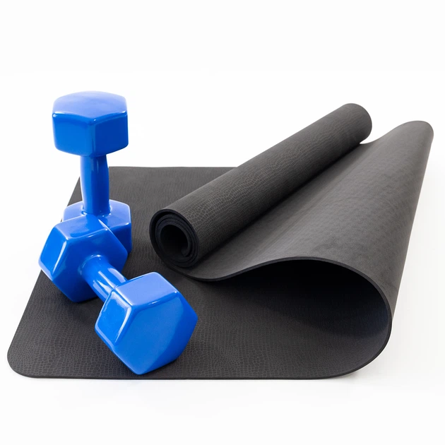 Набір для фітнесу 2в1 килимок для фітнесу та спорту (каремат) + гантелі 2шт по 9 кг OSPORT Set 24 (n-0055) Синій