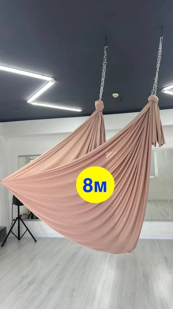 Професійний гамак для аероойоги та флаййоги Zelisko 8 м, Бежевий, повний комплект + відеоуроки з флай-стретчингу