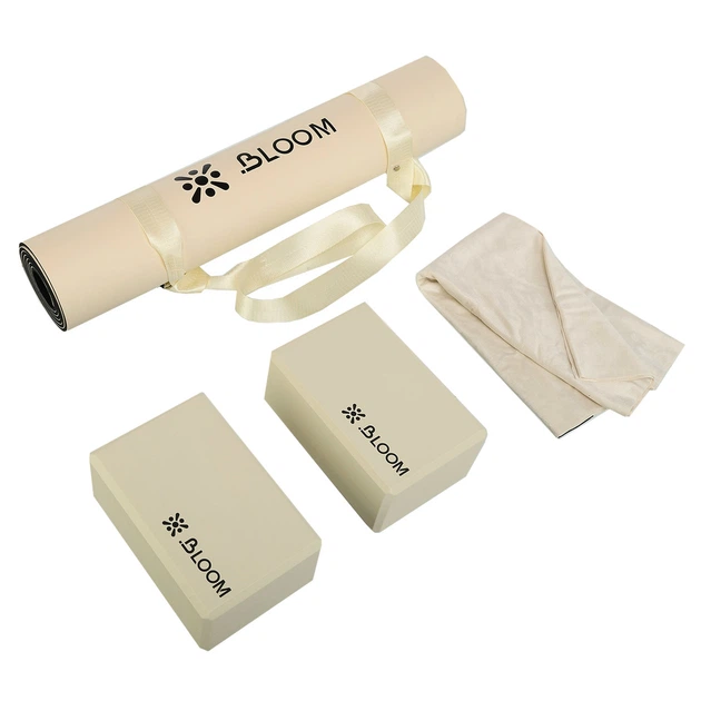 Набір для йоги 4в1 коврик, ремень-стяжка, блок для йоги, рушник для йоги BLOOM LB7101 (EVA, поліестер, нейлон, білий)