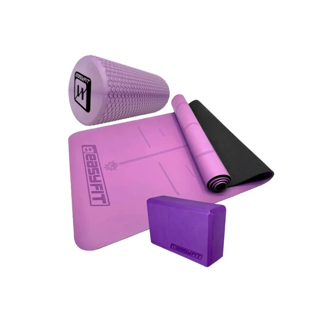 Набір для йоги: Професійний коврик EasyFit Pro 184x68 см, товщина 5 мм, каучук + Блок для йоги EasyFit EVA + Масажний ролик