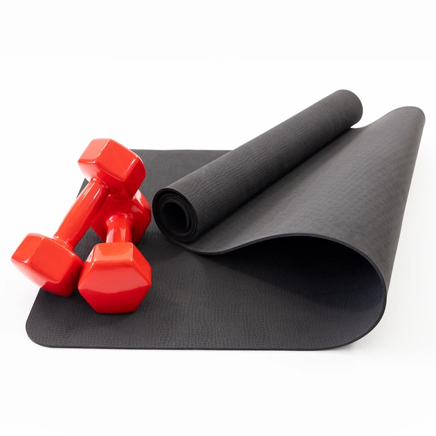 Набір для фітнесу 2в1 килимок для фітнесу та спорту (каремат) + гантелі 2шт по 6 кг OSPORT Set 21 (n-0052) Червоний