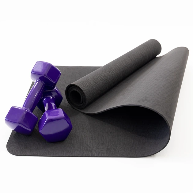 Набір для фітнесу 2в1 килимок для фітнесу та спорту (каремат) + гантелі 2шт по 6 кг OSPORT Set 21 (n-0052) Фіолетовий