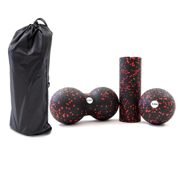 Масажний набір для йоги та фітнесу 3в1 OSPORT EPP, масажний валик йога рол + масажний м'яч МФР (OF-0281) Чорно-червоний