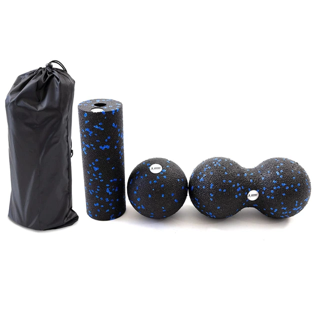 Масажний набір для йоги та фітнесу 3в1 OSPORT EPP, масажний валик йога рол +масажний м'яч МФР (OF-0281) Чорно-синій
