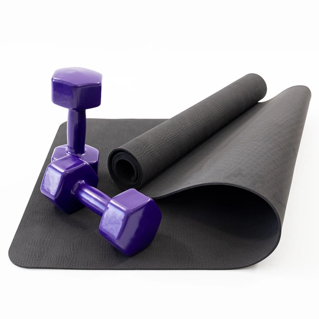 Набір для фітнесу 2в1 килимок для фітнесу та спорту (каремат) + гантелі 2шт по 9 кг OSPORT Set 24 (n-0055) Фіолетовий