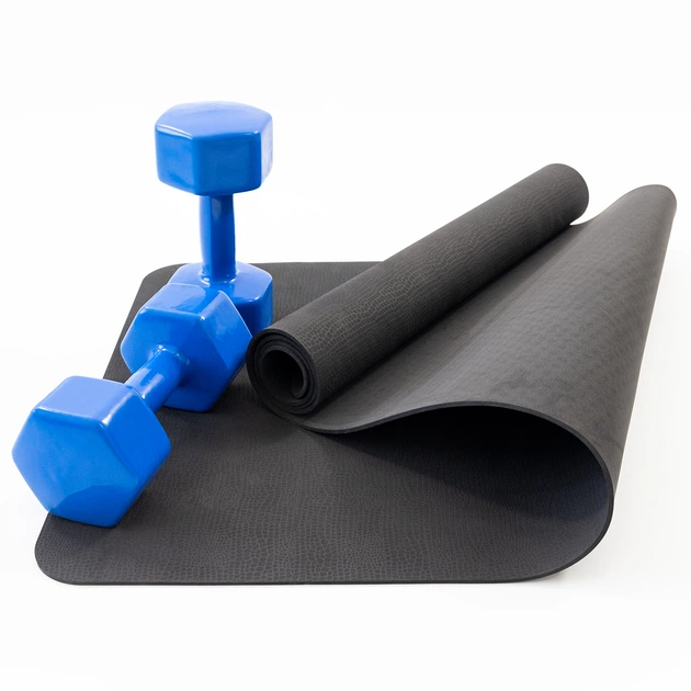 Набір для фітнесу 2в1 килимок для фітнесу та спорту (каремат) + гантелі 2шт по 10 кг OSPORT Set 25 (n-0056) Синій