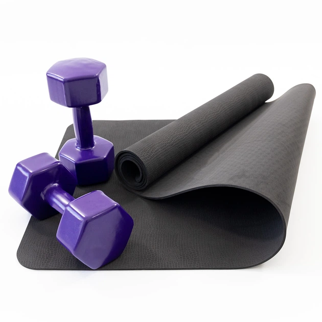 Набір для фітнесу 2в1 килимок для фітнесу та спорту (каремат) + гантелі 2шт по 10 кг OSPORT Set 25 (n-0056) Фіолетовий