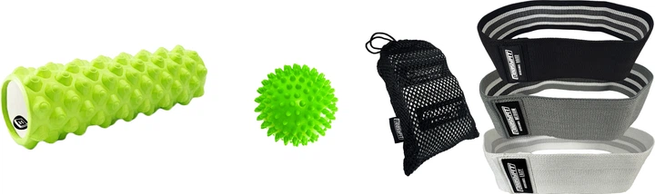 Набір Масажний м'ячик жорсткий EasyFit EF-1064-GN PVC 9 см Зелений (56002200) + Масажний ролик-валик для МФР та йоги EasyFit