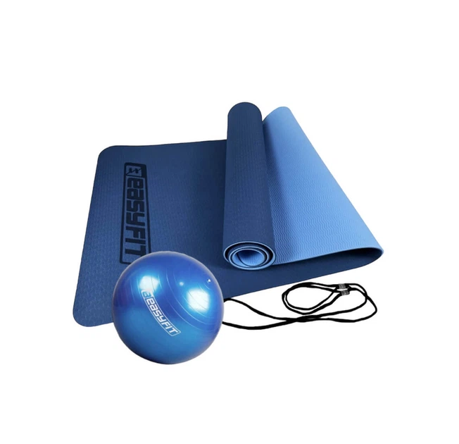 Набір для фітнесу EasyFit: Двошаровий коврик 183x61 см, товщина 6 мм, TPE/TC + М'яч для фітнесу, Діаметр 85 см, Максимальне