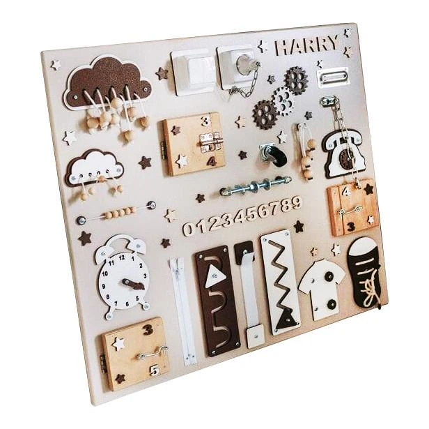 Бізіборд BusyBoard HandMade розвиваючий Навчальний бізікуб коричневий 20*20*20 см