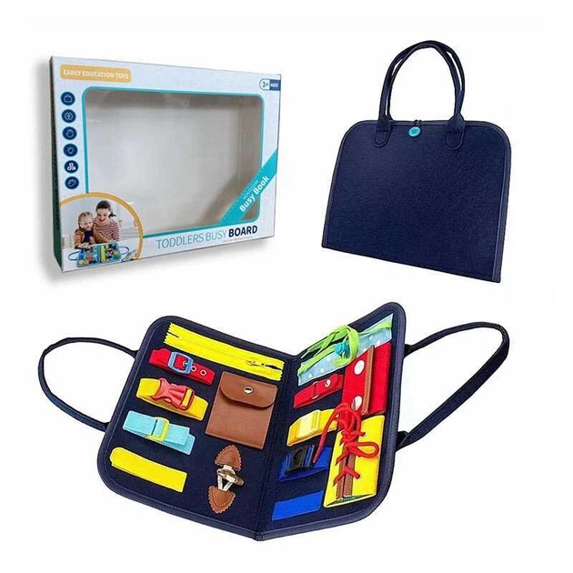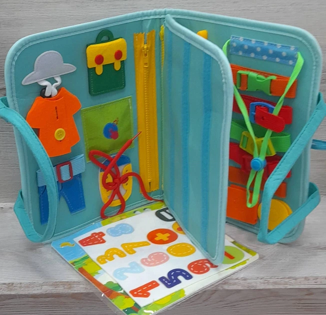 Логічна папка бізіборд фетрова, елементи на липучках, застібки, годинник, дні тижня, пискавка, пазли, цифри, в пакеті