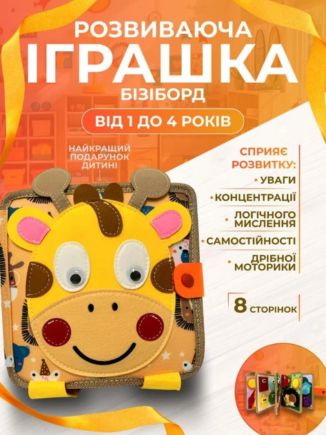 Розвиваюча іграшка для дітей Жираф, бізіборд для розвитку малюка від 1 року