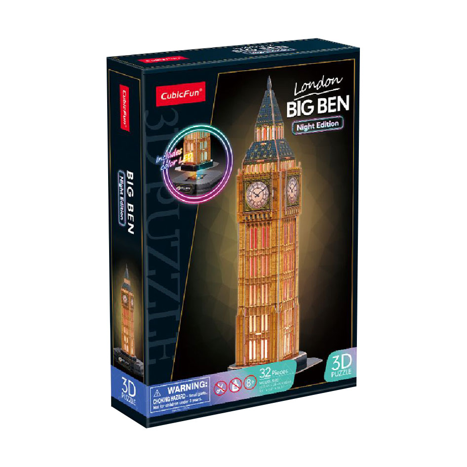 Тривимірна головоломка-конструктор з LED-підсвіткою CubicFun Біг Бен, від 8 років, 32 деталі (L537h)