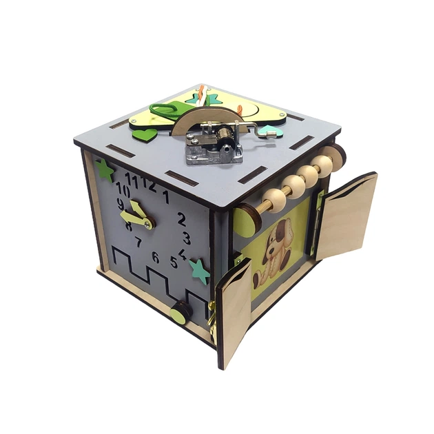 Куб Монтессорі бізикуб 15х15х15 см 13 зон Сірий розвиваючий куб Монтессорі з екологічно чистих матеріалів