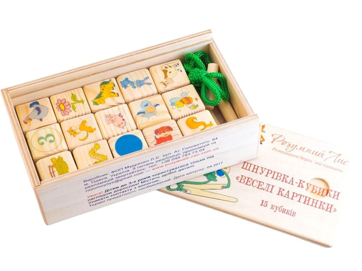 Дерев'яна шнурівка Кубики Веселі картинки 15 куб. Розумний Лис (90046)