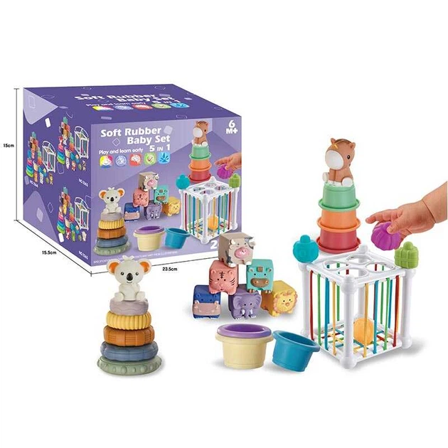Набір для розвитку 1365 26 елементів, кубики, прорізувачі, 5 фігурок, пірамідка, куб із формами, в коробці