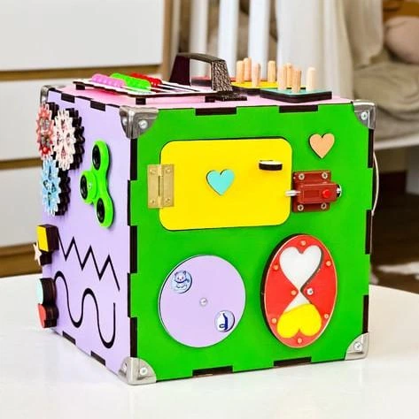 Бізікуб дитячий дерев'яний 232323 см SmartTemple Розвиваючий бізіборд для дітей хлопчика Куб іграшка для розвитку моторики б