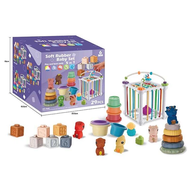 Набір для розвитку 34 елементи кубики брязкальця прорізувачі фігурка пірамідка мішок куб 1296 (18)