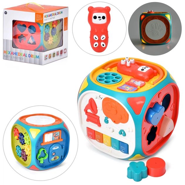 Розвиваюча гра-куб: піаніно, шестерні, сортер, барабан, звук, світло (англ.) (N6108)