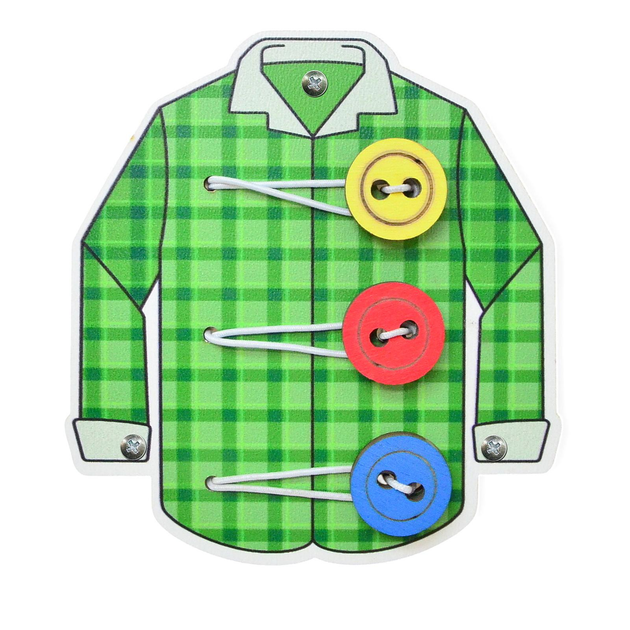 Заготівля для Бізіборда Кольорова Зелена Сорочка 3 Гудзики Шнурівка на Резинці 12 см (ґудзики на гумці) ЛДВП