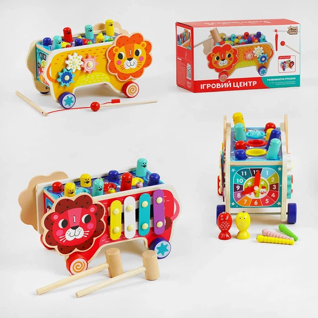 Розвиваюча іграшка 4FUN Game Club Ігровий центр Лев: 3 види гри (стукалка, риболовля, ксилофон) 55202