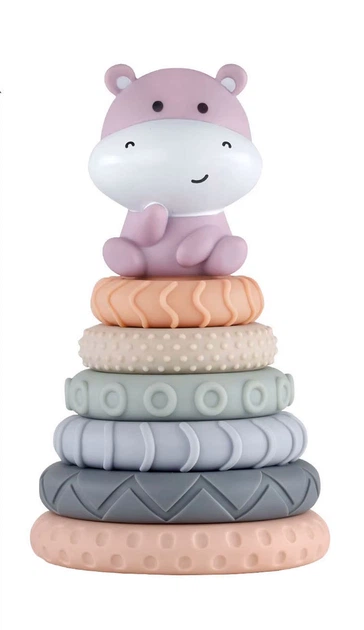 Пірамідка дитяча гумова 6 кілець Бегемотик 16,5 см