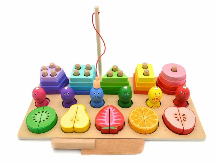 Логічна дерев'яна дошка сортер пірамідка розрізні фрукти риболовля форми кольори 74534
