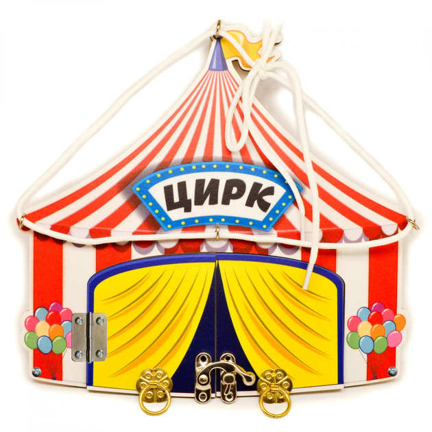 Кольорова Заготовка для Бізіборду Цирк 23 см з Дверцятами та Замочком + Шнурівка (Повний Комплект)