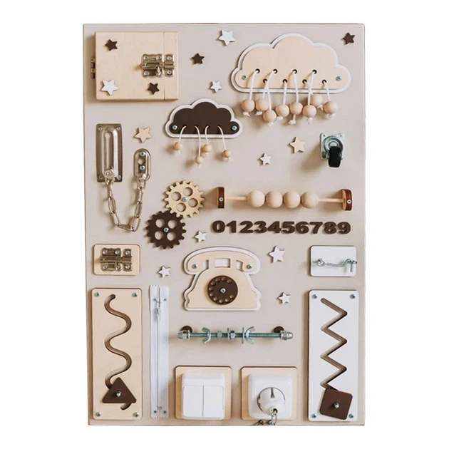 Дерев'яний бізіборд BusyBoss розмір 50*40 см 25 елементів Різнокольровий