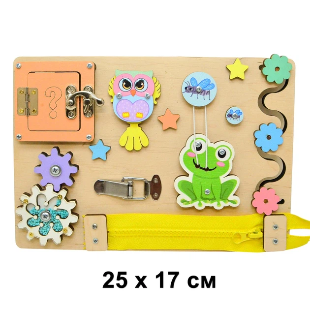Невеликий Бізіборд 25х17 см "Збери Сам" Дошка Розвиваюча 10в1 Заготовки в Розібраному Виді + Кріплення "В Дорогу"