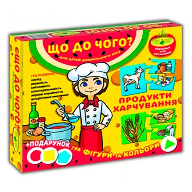 Логічна розвиваюча гра для дошкільнят "Що до чого?"(продукти харчування) Эн.7444