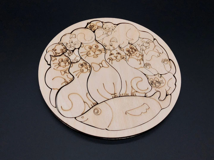 Розвиваючий дерев'яний пазл-сортер Котики круглий 15 см (Х-117)