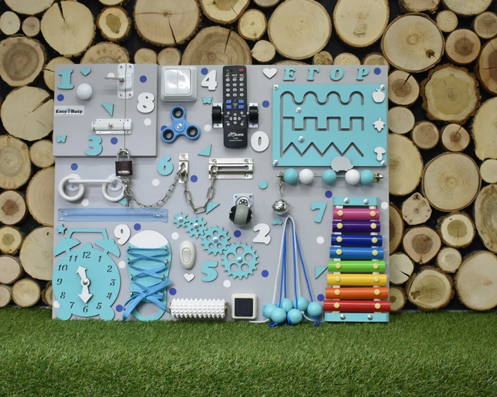 Бізіборд іграшка для раннього розвитку Busy Child Cтандарт Блакитний з пультом та ксилофоном 50 х 65 см