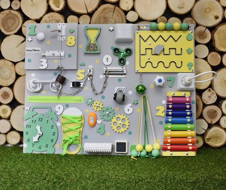 Бізіборд іграшка для раннього розвитку Busy Child Cтандарт Максимальний М'ятний із Жовтим 50 х 65 см