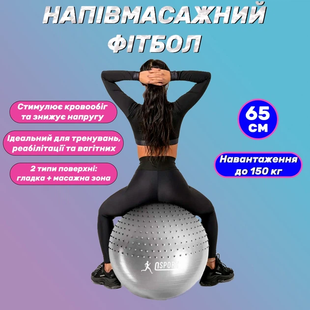 М'яч для фітнесу гімнастичний (фітбол) напівмасажний 65см OSPORT (MS 1652) Сірий