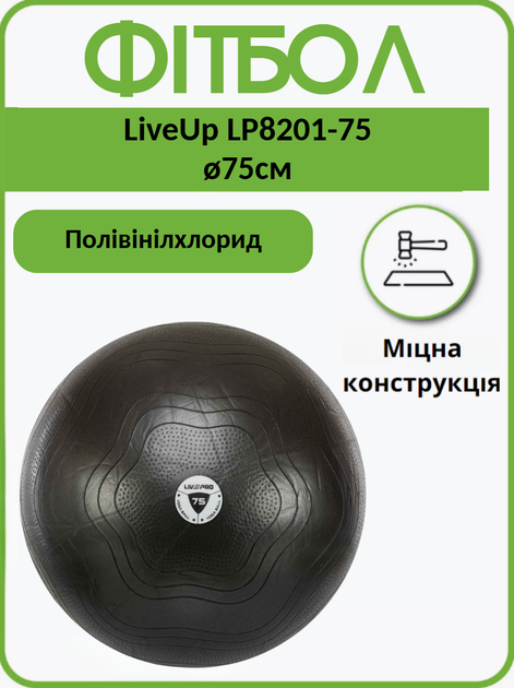 Фітбол м'яч для фітнесу сатин 75см LiveUp LP8201-75 Anti-Burst Чорний