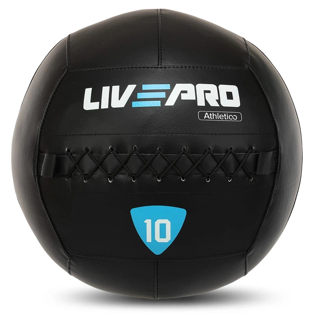 М'яч набивний медичний для кросфіту WALL BALL LiveUp LP8103-10 10кг (PVC, наповнювач-металеві кульки, d-35см, чорний)