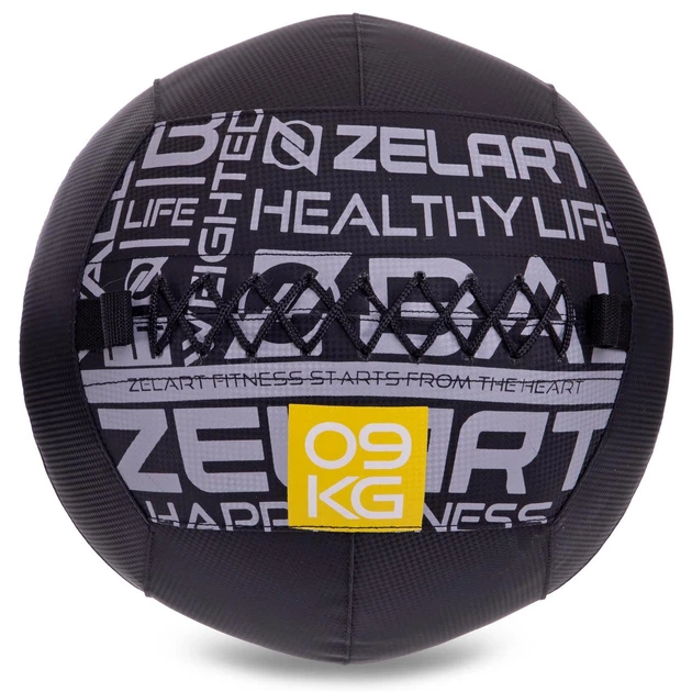 Медбол м'яч медичний набивний для кросфіту 9кг d-35 см WALL BALL Zelart чорний FI-2637-9