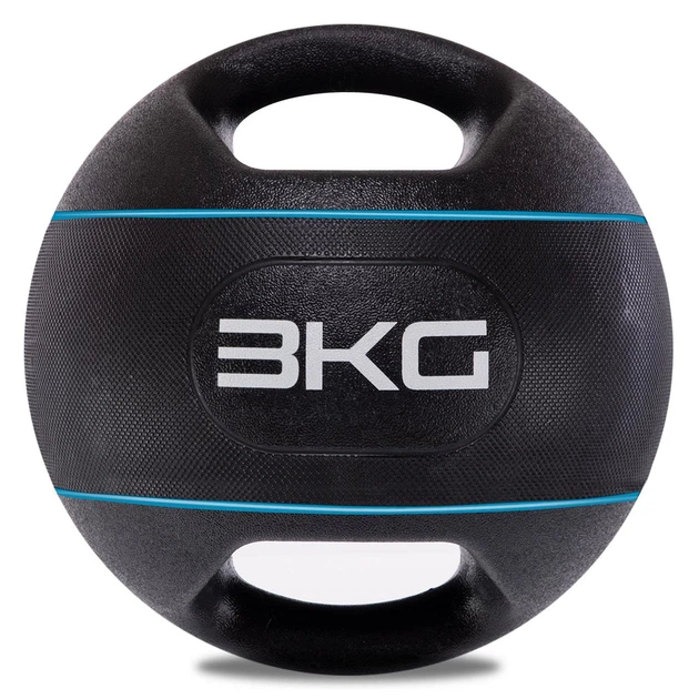 Медбол м'яч медичний дворучний з хватами 3 кг d-25 см Zelart чорно-блакитний TA-7827-3