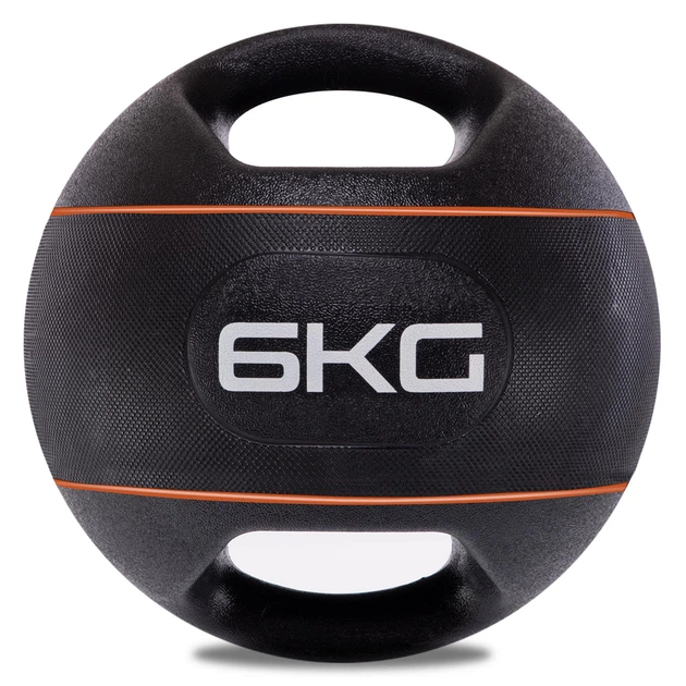 Медбол м'яч медичний дворучний з хватами 6 кг d-27,5 см Zelart чорно-жовтогарячий TA-7827-6