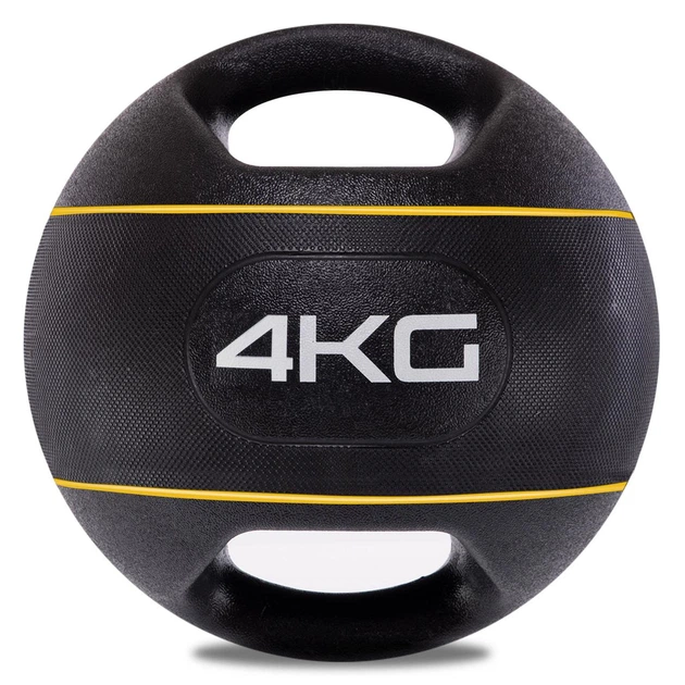 Медбол м'яч медичний дворучний з хватами 4 кг d-25 см Zelart чорно-жовтий TA-7827-4
