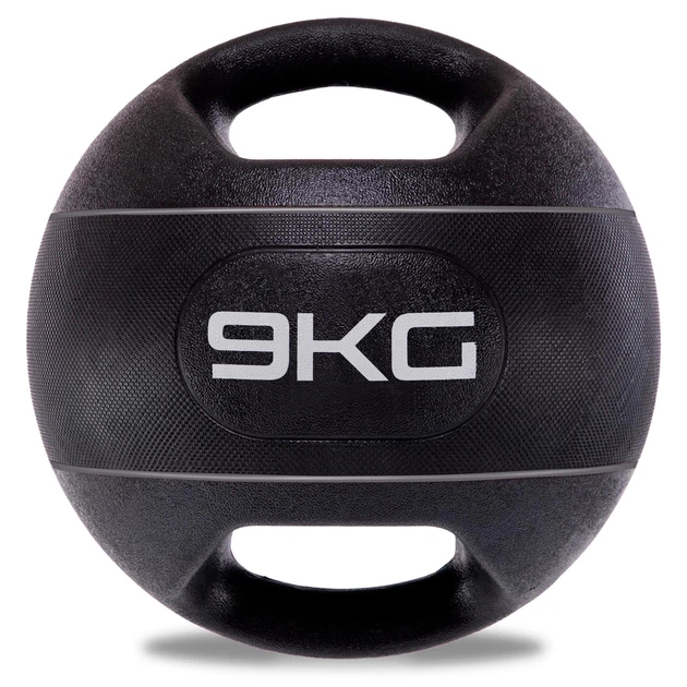 Медбол м'яч медичний дворучний з хватами 9 кг d-27,5 см Zelart чорно-сірий TA-7827-9