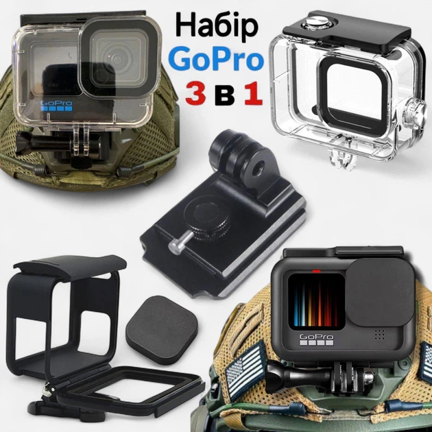 3 в 1 Алюмінієве кріплення на військовий шолом, підводний аквабокс кейс, захисна рамка чохол для екшн камери GoPro Hero 9/10