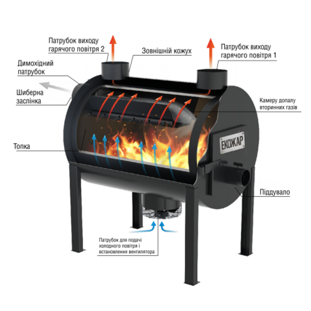 Дров'яна піч буржуйка Екожар Про 1000 плюс з вбудованим вентилятором