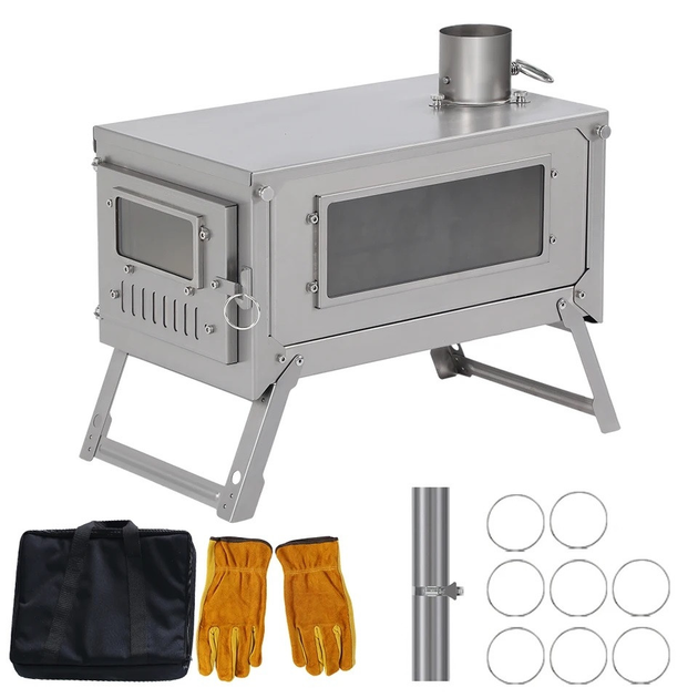 Титанова піч складна на дрова Soomloom titanium посилена буржуйка для наметів з димарем 2 метри