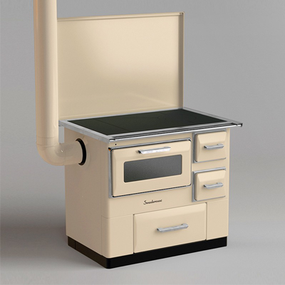 ики: Габарити плити (висота, ширина, глибина): 740x820x645 мм; Габарити камери згоряння: 250x200x400 мм;Габарити духової шафи: 200x430x460 мм;Номінальна теплова потужність(дрова): 9,5 кВт; < Об'єм приміщення: 50-60 m²;ККД: 83 %;Підключення до димаря: бічне/заднє;Діаметр димаря: ø 120 мм; >Паливо: дрова;Вага (сталь з кришкою): 84,3 кг; Колір: білий, бежевий, коричневий.